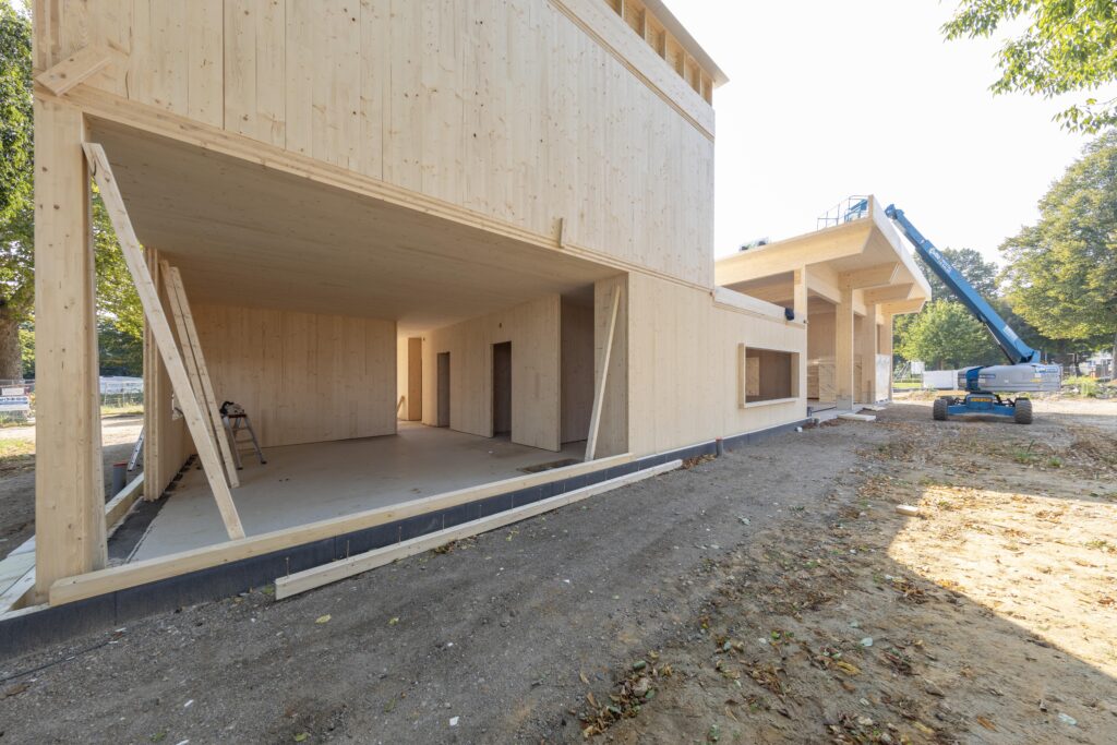 Als je al die voordelen hoort, hoe komt het dan dat we in Nederland toch vaak automatisch voor een betonnen en stalen gebouw kiezen? “Dat begint met de wil en focus om met hout aan de slag te gaan”, aldus Bettina. “Daarbij komt dat het hele proces van houtbouw vooraf en tijdens de bouw anders gaat dan mensen gewend zijn. Daar is nog niet iedereen van doordrongen als ze voor houtbouw kiezen.” Kevin: “Het heeft ook te maken met de samenstelling van je bouwteam. Iedereen moet houtbouw wel omarmen. Want anders val je toch makkelijk terug op het oude bekende zodra er een kink in de kabel komt.”