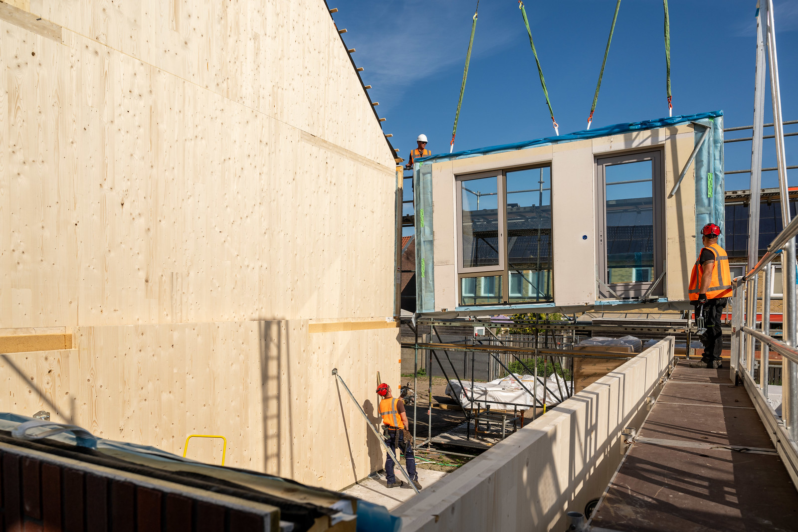 Het innovatieve biobased bouwsysteem van deze woningen, bestaande uit een CLT-casco, HSB-gevels Lees verder